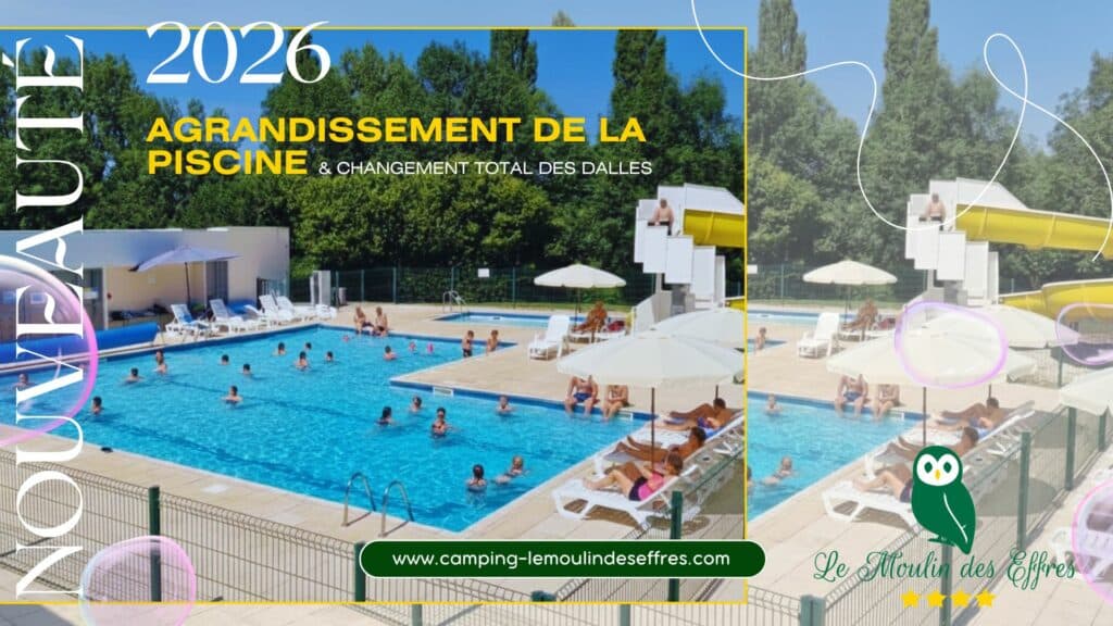 En 2026, nous adaptons nos installations rien que pour vous en agrandissant l’un de nos blocs sanitaires et organisant la réfection totale des dalles de la piscine pour faciliter et améliorer votre confort.